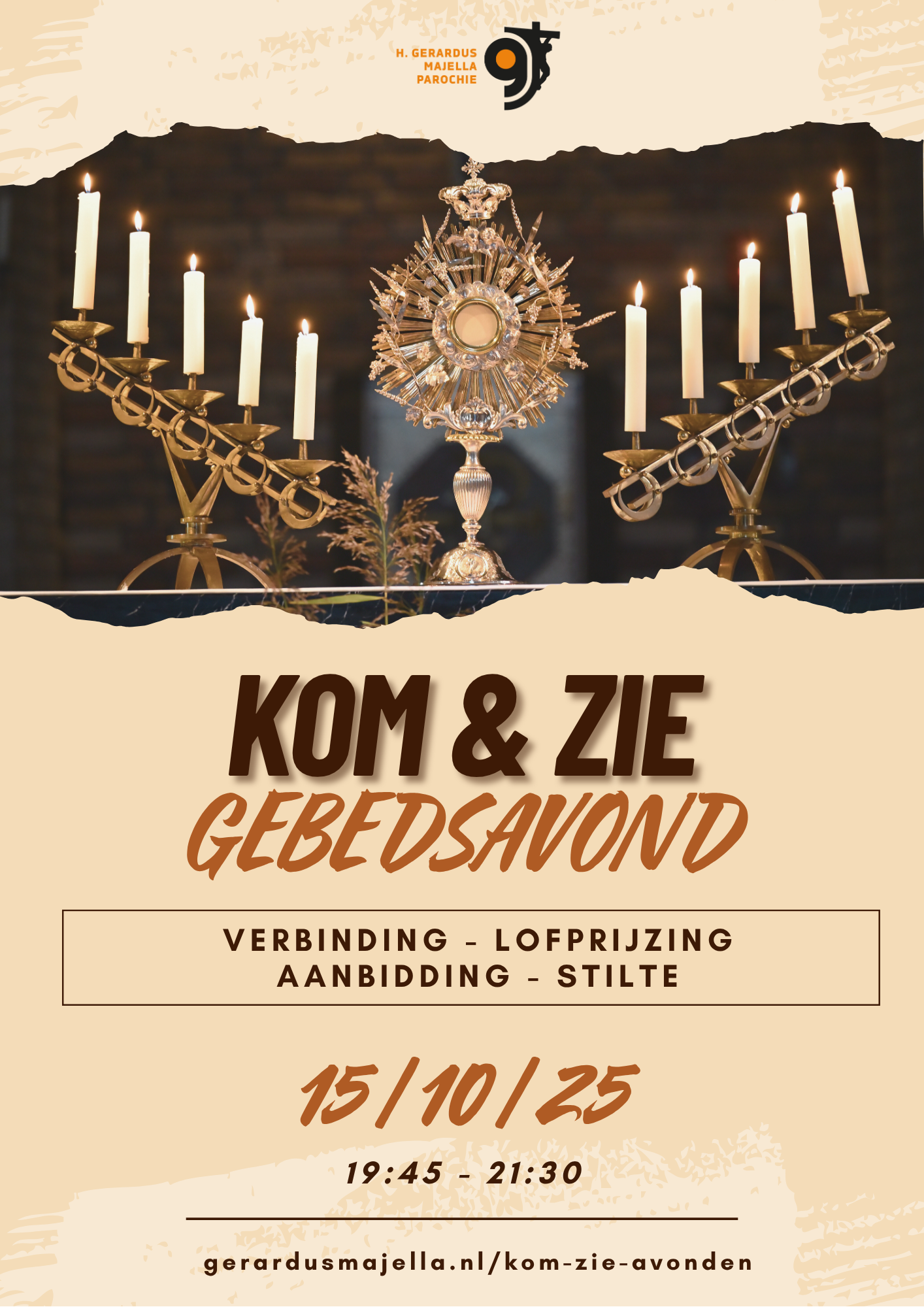 Een Kom & Zie avond start om 19:45 uur in de priorij van de broeders met koffie en thee. Dan volgt vanaf 20:15 uur in de kerk een programma van lofprijzing, een inleiding en/of getuigenis en Eucharistische aanbidding met afwisselend stilte en muziek. Tijdens de avond is er ruimte voor persoonlijk gebed en gezamenlijk gebed voor onze parochie. Van 21:30 uur – 22:00 uur is er een afsluitende borrel in het souterrain van de kerk. Iedereen is welkom!